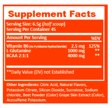 Gracie Amino is a Branched Chain Amino Acid (BCAA) supplement meant for recovery and hydration intra-workout as well as post workout. This formula contains the tried and true 2:1:1 amino ratio and contains 10,000mg amino acids, 8,000mg BCAA and 2,000mg Glutamine, along with 5mg of Vitamin B6.